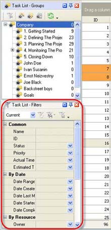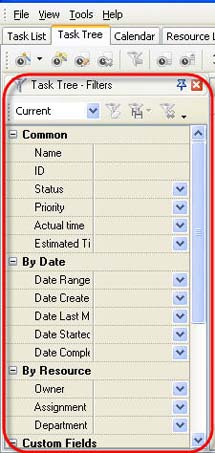 Filters panel features tools for filtering tasks by their properties on Task List, Task Tree and Calendar views.