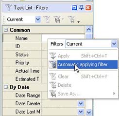 Select and apply existing filter to Task List, Task Tree and Calendar grids