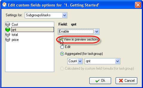 Check “View in preview sections” option to display current custom field in custom field info, in task screen tips on Calendar grid and Print Preview Window