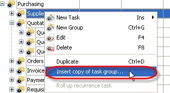 Go to Task List or Calendar view, right click on required task group on Task Groups panel or select Task Tree view and right click on required task group on Task Tree grid
