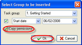 Open “Task group” drop-down box, select task group that you want to copy and click “Ok”.