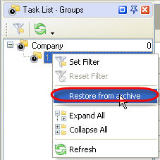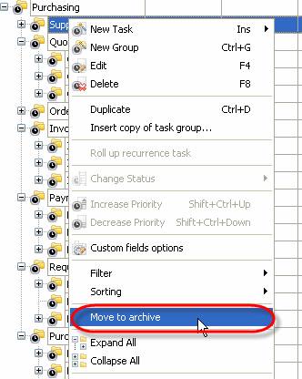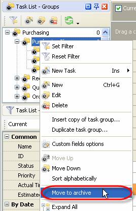 To place task group to archive use following steps: