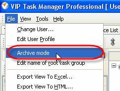 - Select main menu command [File -> Archive mode]