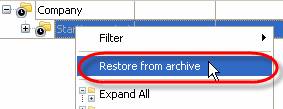 - Select “Restore from archive” from drop-down list
