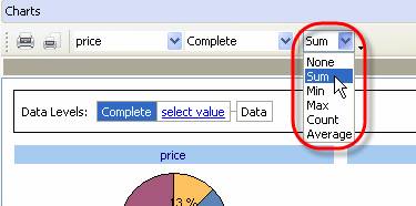 - Select required fields for the diagrams from the corresponding drop-down lists on Charts toolbar