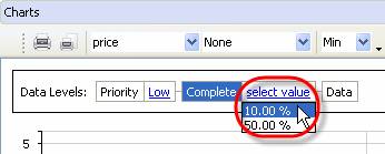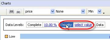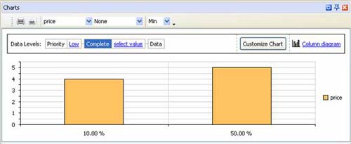 By selecting “Priority” field in “Data Levels” box you will diagram “price-priority” relation (the value of “Price” field for each value of “Priority” field).