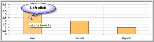 Left click on “Select value” drop-down list to select one of the values of “Priority” field that the tasks of selected task group have or click on the corresponding diagram for this value. For example, you select “Low” priority and in that way you diagram the values of “price” field for each value of “Complete” field of the tasks with “Low” priority.