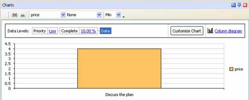 By selecting definite value of “Complete” field from corresponding drop-down list or clicking on the diagram for this value, e.g. 10.00 %, you will diagram the price value of the tasks that have selected “Complete” value (10.00 %).