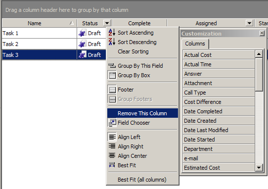 1. Choose necessary task attributes (columns) and remove unnecessary.