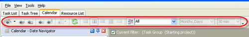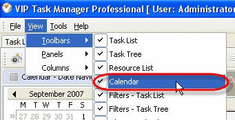 • To display or hide Calendar Toolbar use main menu command [View -> Toolbars -> Calendar]