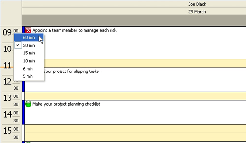 Right click on Time column allows to change schedule time interval on Calendar grid