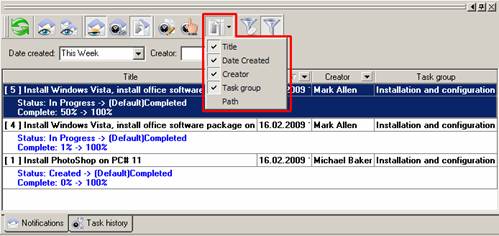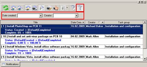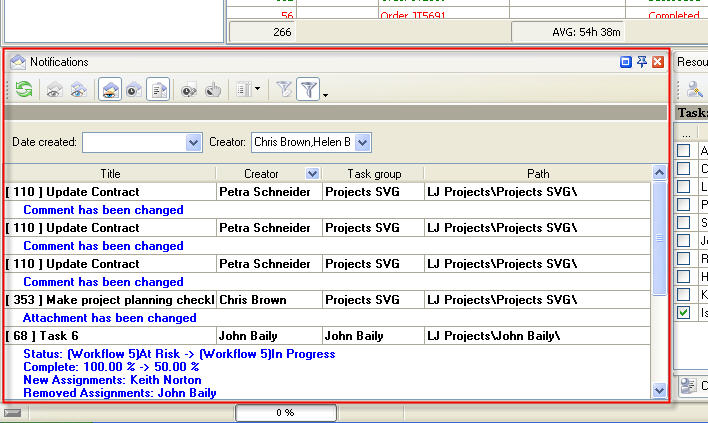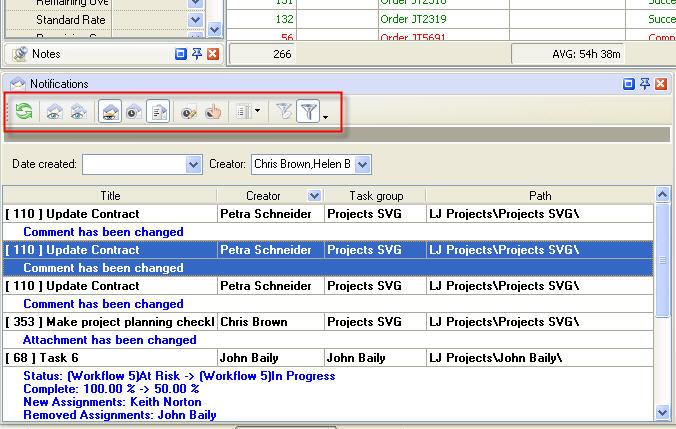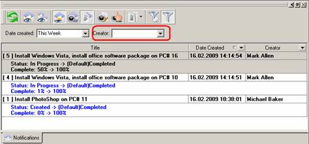 - To filter notifications by Creator in Notifications panel use special icon on toolbar of Notification panel and select creators whose notifications you would like to see