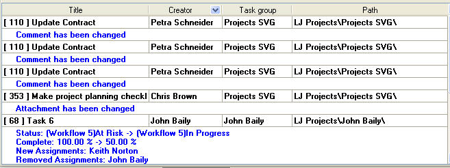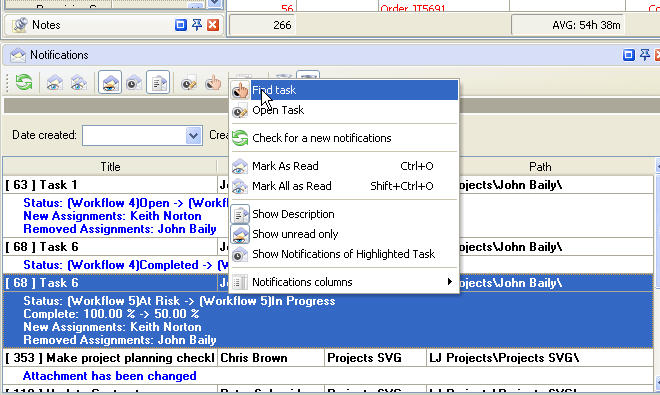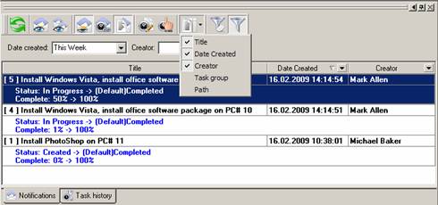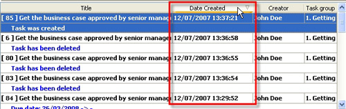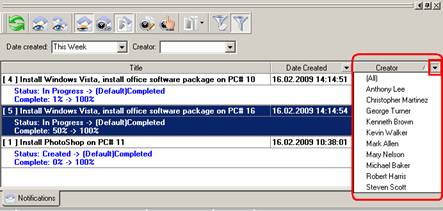 - To sort notifications by creator (alphabetically ascending or descending) click on column header