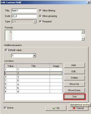 Each time when you create custom field of list type you can sort list items by alphabetical and numeric order. Use special “Sort” option and items will be sorted automatically.