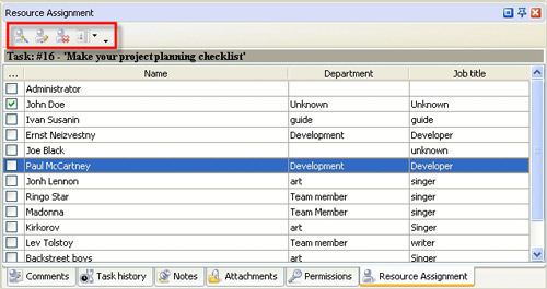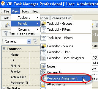 By default Resource Assignment panel is located at the right bottom part of application window.