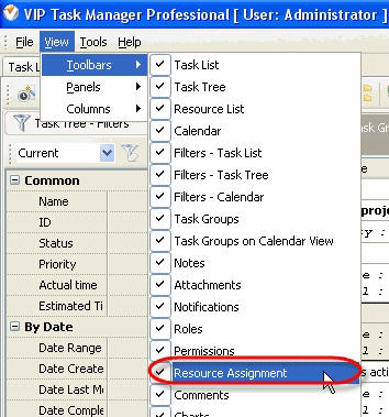 By default Resource Assignment toolbar is located at left top part of Resource Assignment panel.