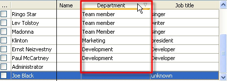 Left click on column header allows to sort resources in ascending or descending order by selected column