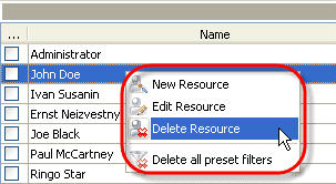 Resource Assignment panel features tools for creating, editing and deleting resources and assigning them to tasks