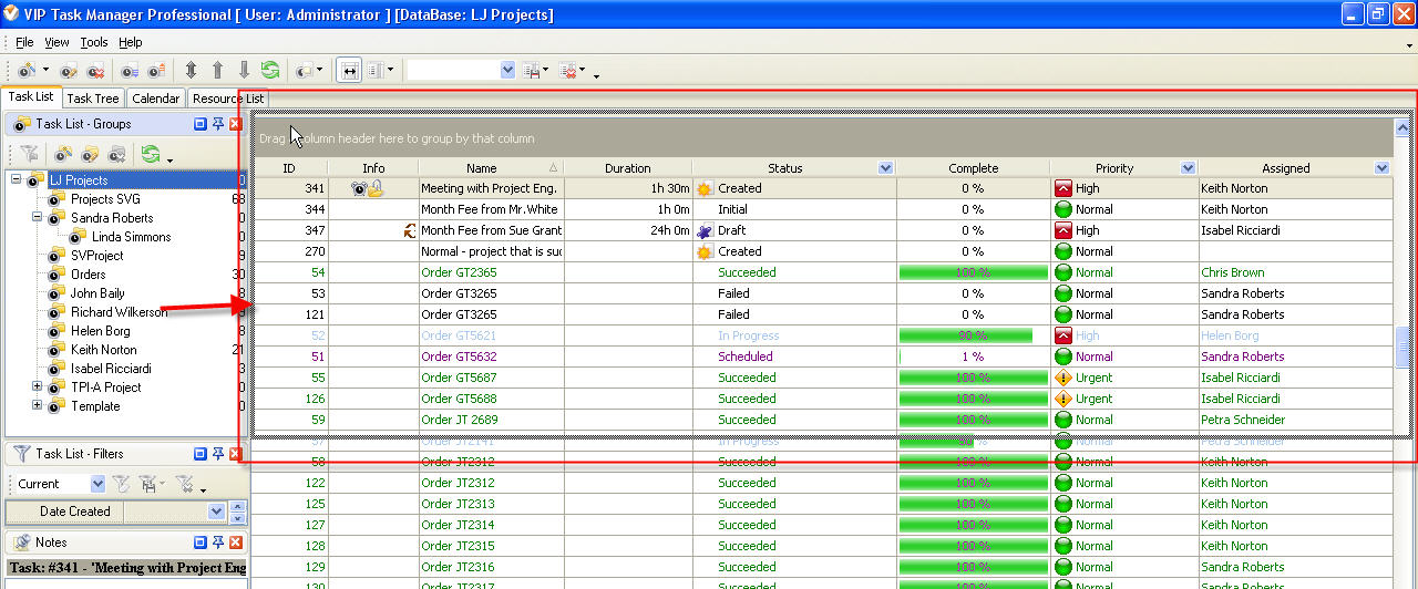 Filter tasks on Task List grid by selected Task Group |