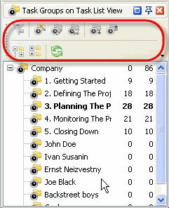 By default Task Groups toolbar is located at the top part of Task Groups panel.