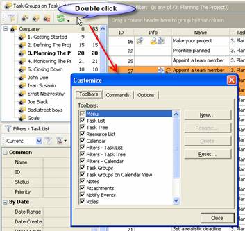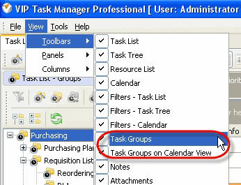 Task Groups Toolbar