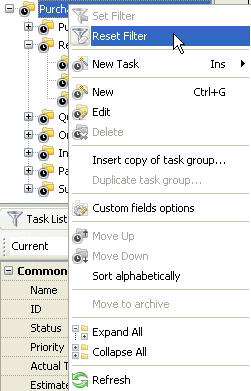 Set filter to display tasks of selected task groups