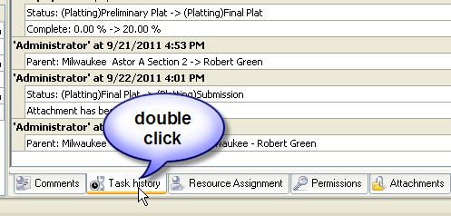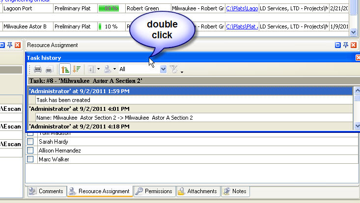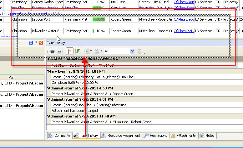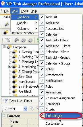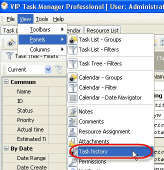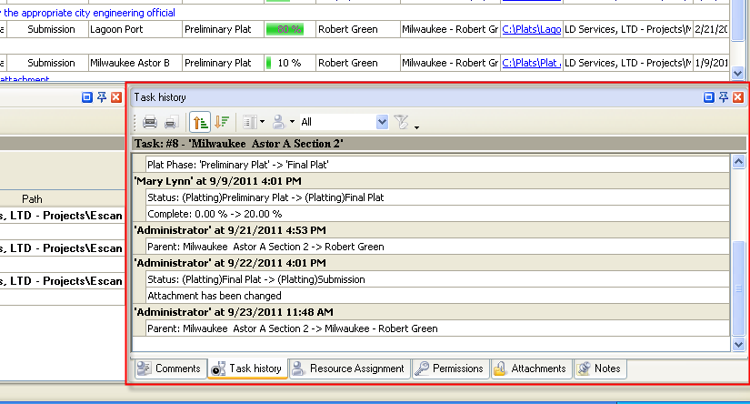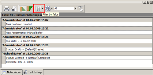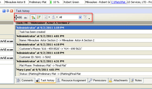 Task History panel displays changes of the task and its properties