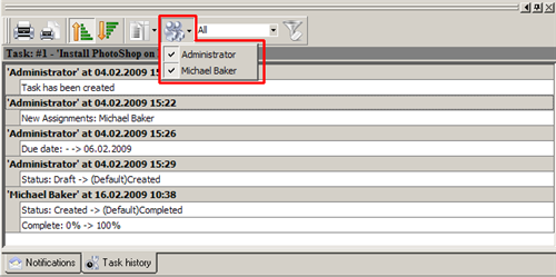 You can filter and sort records in Task History panel and tab. This feature was added to help users with handling history of tasks. You can filter records by task fields, authors, time interval and sort records ascending and descending by date.