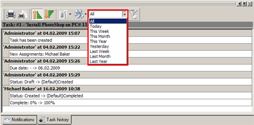 - To filter records by time interval use drop-down list “Filter list by time interval” from Task history toolbar