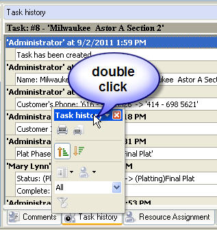 - To take Task History panel out its default location double click on its tab.