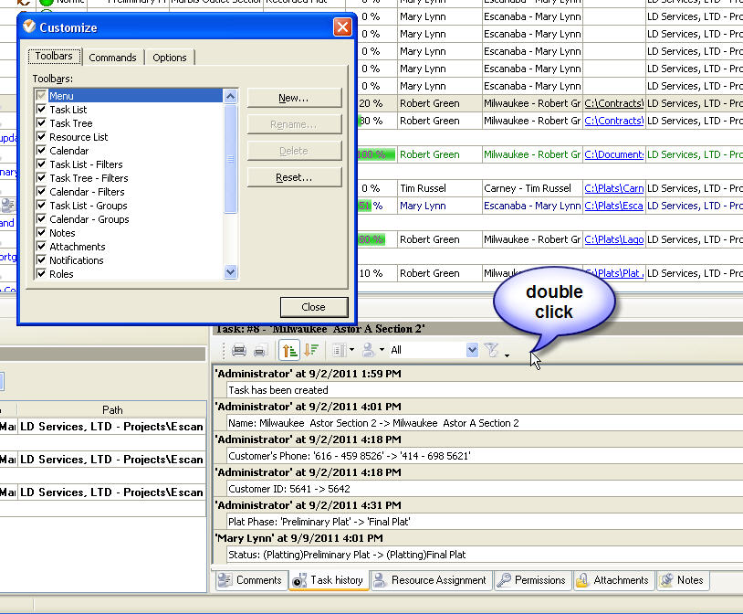 Add or remove buttons to Task History Toolbar |