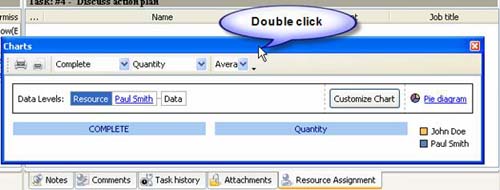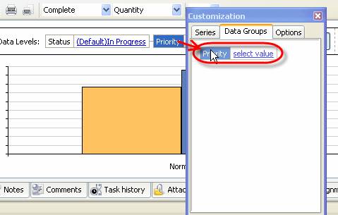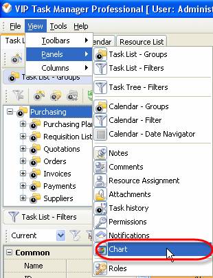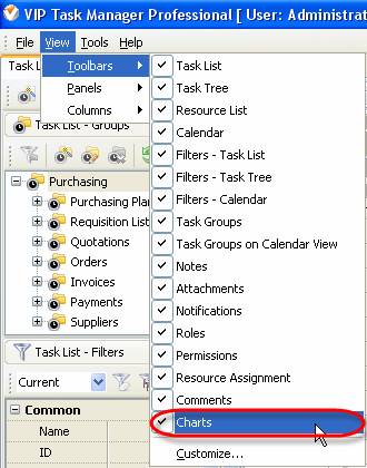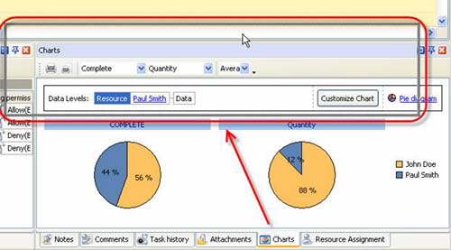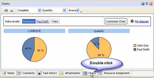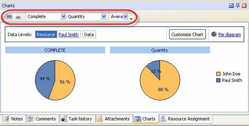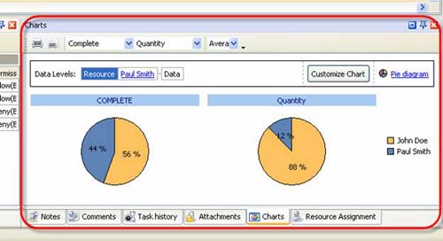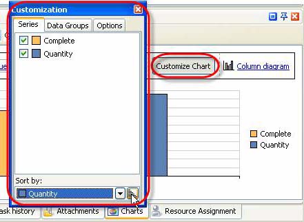Charts panel displays field"s values of the tasks in the form of diagram.