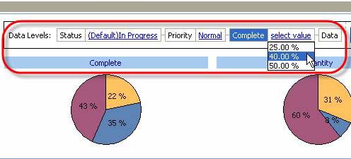 The order of drill down diagrams can be changed by Drag & Drop method. The level of displayed data can be changed by selecting required field on "Data Levels" box.
