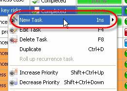 - Right click on Task List, Task Tree or Calendar grid and select "New Task" from drop-down list