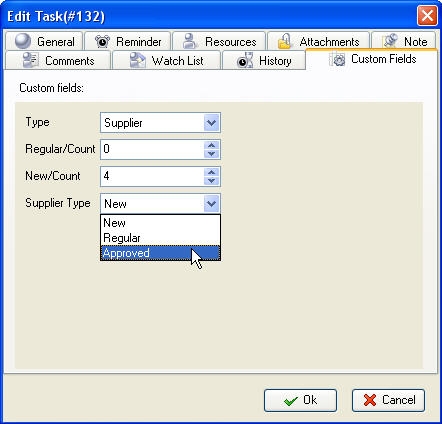 Enter required values by using the keyboard or up-down buttons or select custom field values from predefined drop-down list according to the type of the custom field
