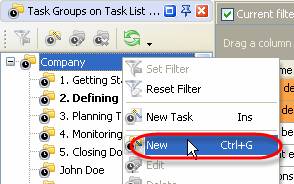 Right click on Task Groups Panel tree and select "New" from drop-down list