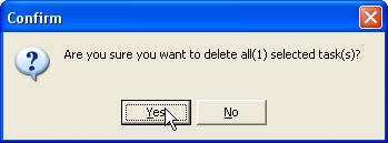 In confirmation window click "Ok" if you want to delete this task, or "No" if not.