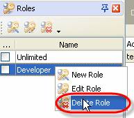 - Right click on required role on Roles Panel grid and select "Delete Role" from drop-down list