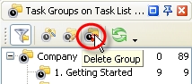 - Select required task group and click on "Delete Group" button on Task Group panel toolbar