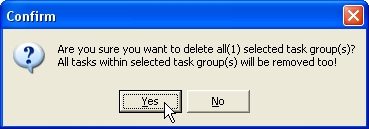 In confirmation window click "Ok" if you want to delete this task group, or "No" if not.