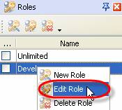 - Right click on required role on Roles Panel grid and select "Edit Role" from drop-down list