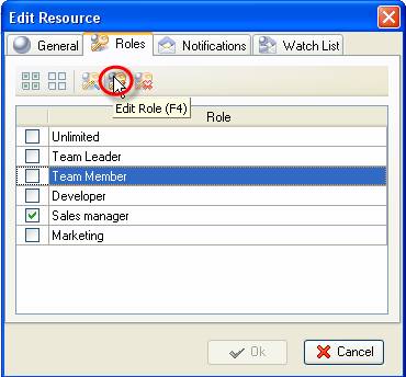- In "New Resource" or "Edit Resource" dialog select Roles tab, select required role and click on "Edit Role" button or press "F4" key