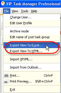 There are several ways to export Task List, Task Tree and Calendar views to MS Excel or HTML.