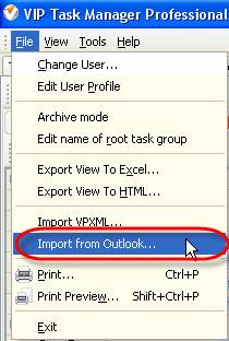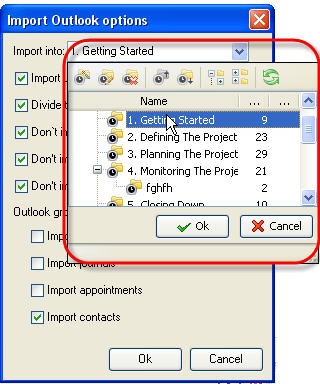 Open ‘Import into:’ drop-down box and select task group to import the tasks from MS Outlook
