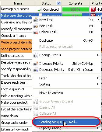 Start VIP Task Manager, right click on required task and select ‘Sending task(s) by Email…’ from drop-down list
