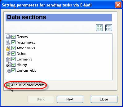 Check ‘Also send attachments’ option to send the files or links attached to selected task together with the task