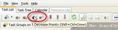 Select required task and click on "Decrease Priority" / "Increase Priority" buttons on Task List, Task Tree or Calendar toolbar