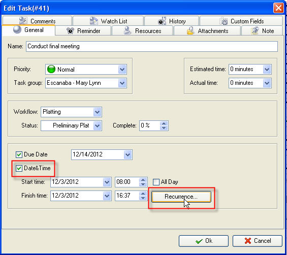 - Check "Date & Time" option and click "Recurrence:" button