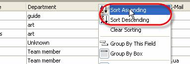 Left click on column header. To change the direction of sorting, left click on this column header again.