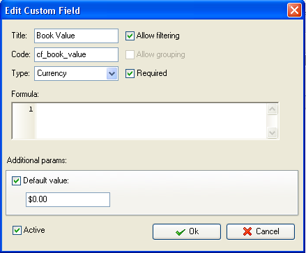 custom field “Book Value” with code “cf_book_value”